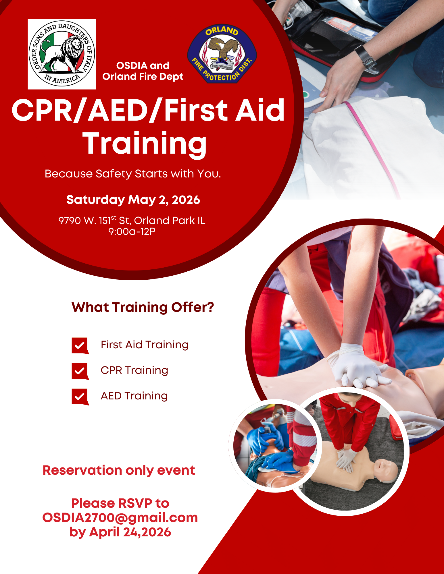 2 May — CPR Training Course 9am - 12pm at the Orland Fire Department Social hall (RSVP by the April 24th)